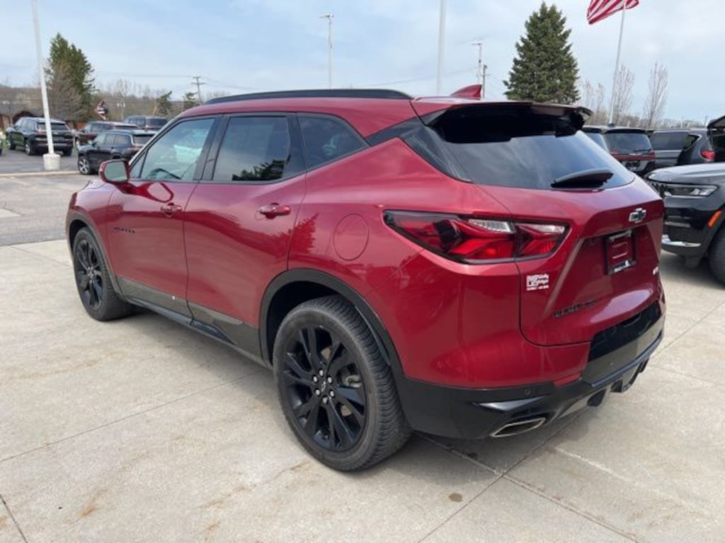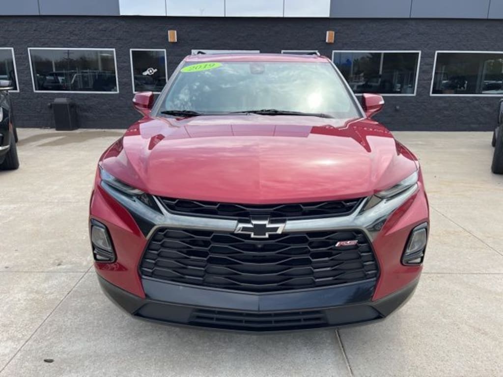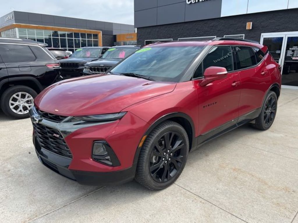 NO NEED TO LEAVE YOUR HOME OR BUSINESS!! SZOTT DELIVERS!!!. Recent Arrival! Clean CARFAX. Odometer is 16414 miles below market average! 2019 Red Tintcoat Chevrolet Certified. AWD Blazer RS 9-Speed Automatic With some available options like Enhanced Convenience & Driver Confidence II Pkg (Advanced Adaptive Cruise Control, Following Distance Indicator, Forward Automatic Braking, Forward Collision Alert, Front Pedestrian Braking, HD Surround Vision, Heated Rear Outboard Seating Positions, IntelliBeam Headlamps, Lane Keep Assist w/Lane Departure Warning, Memory Settings For Driver Seat & Exterior Mirrors, Power Tilt & Telescoping Steering Column, Radio: Chevrolet Infotainment 3 Premium System, Rear Camera Mirror, Safety Alert Seat, Ventilated Driver & Front Passenger Seats, and Wireless Charging), Floor Liner Package (LPO) (1st & 2nd Row All-Weather Floor Liner (LPO)), Preferred Equipment Group 1RS, Sun & Wheels Package (Panoramic Tilt-Sliding Power Sunroof and Wheels: 21" Gloss Black Aluminum), 3.49 Final Drive Ratio, 4-Wheel Disc Brakes, 6 Speakers, 6-Speaker Audio System Feature, 6-Way Power Front Passenger Seat Adjuster, ABS brakes, Air Conditioning, Alloy wheels, AM/FM radio: SiriusXM, Apple CarPlay/Android Auto, Auto-dimming door mirrors, Auto-dimming Rear-View mirror, Automatic temperature control, Brake assist, Bumpers: body-color, Child-Seat-Sensing Airbag, Compass, Delay-off headlights, Driver door bin, Driver vanity mirror, Dual front impact airbags, Dual front side impact airbags, Electronic Stability Control, Emergency communication system: OnStar and Chevrolet connected services capable, Four wheel independent suspension, Front anti-roll bar, Front Bucket Seats, Front Center Armrest, Front dual zone A/C, Front reading lights, Fully automatic headlights, Garage door transmitter, Heated door mirrors, Heated Driver & Front Passenger Seats, Heated front seats, Heated steering wheel, High-Intensity Discharge Headlights, Illuminated entry, Knee airbag, Leather Shift Knob, Low tire pressure warning, Navigation System, Occupant sensing airbag, Outside temperature display, Overhead airbag, Overhead console, Panic alarm, Passenger door bin, Passenger vanity mirror, Perforated Leather-Appointed Seat Trim, Power door mirrors, Power driver seat, Power Liftgate, Power passenger seat, Power steering, Power windows, Radio data system, Radio: Chevrolet Infotainment 3 Plus System, Rear anti-roll bar, Rear reading lights, Rear seat center armrest, Rear window defroster, Rear window wiper, Remote keyless entry, Ride & Handling Suspension, Roof rack: rails only, Security system, Set of 4 Wheel Locks (LPO), Speed control, Speed-sensing steering, Split folding rear seat, Spoiler, Steering wheel mounted audio controls, Tachometer, Telescoping steering wheel, Tilt steering wheel, Traction control, Trip computer, Turn signal indicator mirrors, Variably intermittent wipers, Voltmeter, and Wheels: 20" Dark Android Machined-Face Aluminum.