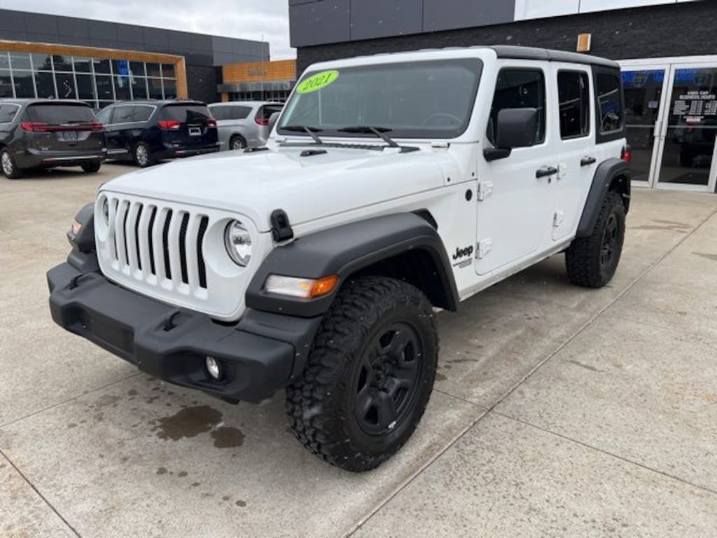 *NO NEED TO LEAVE YOUR HOME OR BUSINESS!! SZOTT DELIVERS!!!. Recent Arrival! CARFAX One-Owner. Clean CARFAX. Odometer is 578 miles below market average! 2021 Bright White Clearcoat Jeep Certified. 4WD Wrangler Unlimited Sport S 8-Speed Automatic With some available options like Cold Weather Group (Heated Front Seats and Heated Steering Wheel), Convenience Group (Universal Garage Door Opener), Quick Order Package 25S Sport S (Automatic Headlamps, Deep Tint Sunscreen Windows, Front 1-Touch Down Power Windows, Leather Wrapped Steering Wheel, Power Heated Mirrors, Remote Keyless Entry, Security Alarm, Speed Sensitive Power Locks, Sport S, Sun Visors w/Illuminated Vanity Mirrors, and Wheels: 17" x 7.5" Tech Silver Aluminum), Technology Group (7.0" Touchscreen Display, Air Conditioning w/Auto Temperature Control, Air Filtering, Apple CarPlay, Cluster 7.0" TFT Color Display, For More Info, Call 800-643-2112, Google Android Auto, GPS Antenna Input, Integrated Center Stack Radio, Radio: Uconnect 4 w/7" Display, SiriusXM Radio Service, SiriusXM Satellite Radio, and USB Host Flip), 3.45 Rear Axle Ratio, 4-Wheel Disc Brakes, 8 Speakers, ABS brakes, Air Conditioning, AM/FM radio, Aux Battery, Black 3-Piece Hard Top, Brake assist, Cloth Low-Back Bucket Seats, Compass, Delay-off headlights, Driver door bin, Driver vanity mirror, Dual front impact airbags, Dual front side impact airbags, Electronic Stability Control, Freedom Panel Storage Bag, Front anti-roll bar, Front Bucket Seats, Front Center Armrest w/Storage, Front fog lights, Front reading lights, Integrated roll-over protection, Low tire pressure warning, Manufacturer's Statement of Origin, No Soft Top, Non-Lock Fuel Cap w/o Discriminator, Normal Duty Suspension, Occupant sensing airbag, Outside temperature display, ParkView Rear Back-Up Camera, Passenger door bin, Passenger vanity mirror, Power steering, Radio data system, Radio: Uconnect 3 w/5" Display, Rear anti-roll bar, Rear reading lights, Rear Window Defroster, Rear Window Wiper/Washer, Speed control, Split folding rear seat, Steering wheel mounted audio controls, Stop-Start Dual Battery System, Tachometer, Telescoping steering wheel, Tilt steering wheel, Traction control, Trip computer, Variably intermittent wipers, and Wheels: 17" x 7.5" Black Steel Styled.