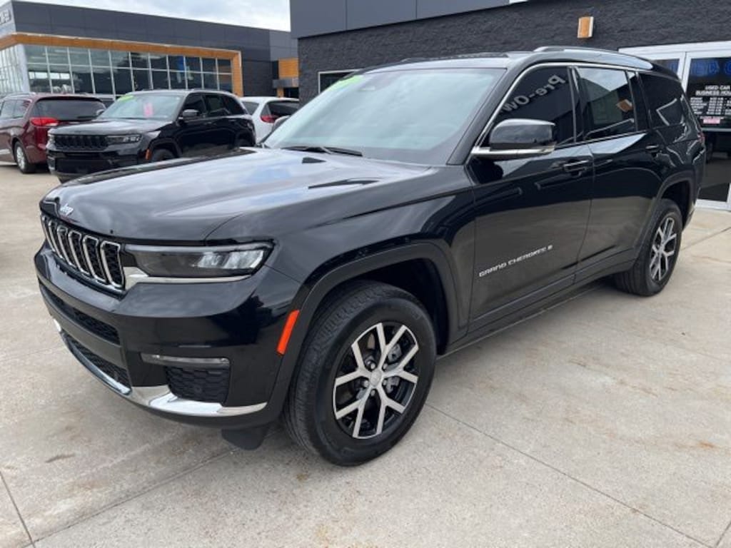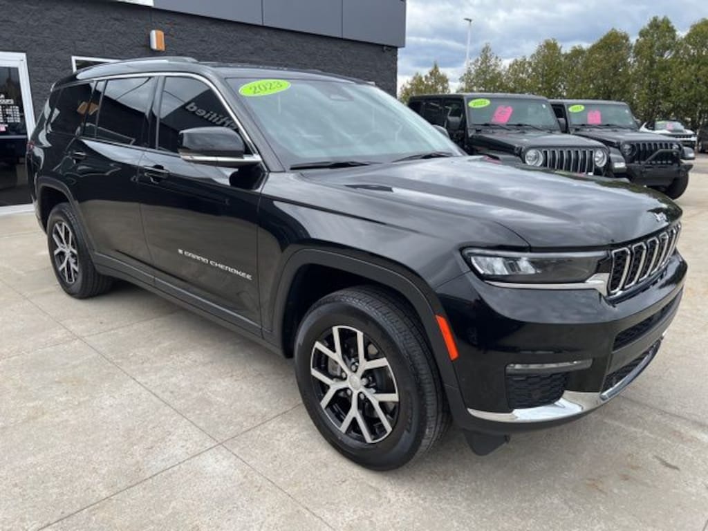 NO NEED TO LEAVE YOUR HOME OR BUSINESS!! SZOTT DELIVERS!!!. CARFAX One-Owner. Clean CARFAX. 2023 Diamond Black Crystal Pearlcoat Jeep 4WD Grand Cherokee L Limited 8-Speed Automatic With some available options like Luxury Tech Group II (2nd Row Manual Window Shades, Auto-Dimming Exterior Driver Mirror, Capri Leatherette w/Axis II Seats, Integrated Off-Road Camera, Intersection Collision Assist System, Memory Steering Column, ParkSense Front/Rear Park Assist w/Stop, Passive Entry - Front/Rear Doors, Liftgate, Power Tilt/Telescope Steering Column, Rain Sensitive Windshield Wipers, Rear Back Up Camera Washer, Rearview Autodim Digital Display Mirror, Surround View Camera System, Ventilated Front Seats, and Wireless Charging Pad), Quick Order Package 23E, 3.45 Rear Axle Ratio, 3rd row seats: split-bench, 4-Wheel Disc Brakes, 6 Speakers, ABS brakes, Active Noise Control System, Air Conditioning, Alloy wheels, AM/FM radio: SiriusXM with 360L, Anti-whiplash front head restraints, Audio memory, Auto High-beam Headlights, Automatic temperature control, Brake assist, Bumpers: body-color, Capri Leatherette Seats, Compass, Delay-off headlights, Driver door bin, Driver vanity mirror, Dual front impact airbags, Dual front side impact airbags, Electronic Stability Control, Emergency communication system, Four wheel independent suspension, Front anti-roll bar, Front Bucket Seats, Front Center Armrest w/Storage, Front dual zone A/C, Front fog lights, Front reading lights, Fully automatic headlights, Garage door transmitter, Heated door mirrors, Heated front seats, Heated rear seats, Heated steering wheel, Illuminated entry, Knee airbag, Low tire pressure warning, Manual Fold Seatbacks, Memory seat, Molded In Color Black/Gloss Black Roof Rails, Navigation System, Normal Duty Suspension, Occupant sensing airbag, Outside temperature display, Overhead airbag, Overhead console, Panic alarm, ParkView Rear Back-Up Camera, Passenger door bin, Passenger vanity mirror, Power door mirrors, Power driver seat, Power Liftgate, Power passenger seat, Power steering, Power windows, Radio data system, Radio: Uconnect 5 Nav w/10.1" Display, Rear air conditioning, Rear anti-roll bar, Rear reading lights, Rear window defroster, Rear window wiper, Reclining 3rd row seat, Remote keyless entry, Security system, Speed control, Speed-Sensitive Wipers, Split folding rear seat, Spoiler, Steering wheel mounted audio controls, Tachometer, Telescoping steering wheel, Tilt steering wheel, Traction control, Trip computer, Turn signal indicator mirrors, Variably intermittent wipers, Voltmeter, Wheels: 18" x 8.0" Fully Painted Aluminum, and Wheels: 18" x 8.0" Polished/Painted Aluminum.