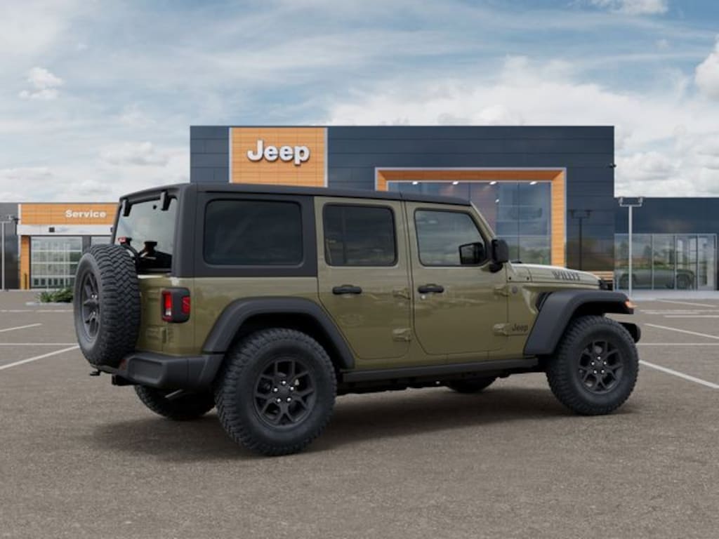 With some available options like Convenience Group (2-Door Passive Entry, Front Door Locks, Air Conditioning with Auto Temp Control, Air Filtering, Cluster 7.0" TFT Color Display, Emergency/Assistance Call, Heated Front Seats, Heated Steering Wheel, and Universal Garage Door Opener), Quick Order Package 22W Willys (4-Wheel Drive Swing Gate Decal, 7 and 4 Pin Wiring Harness, Advanced Brake Assist, Automatic Headlamps, Auxiliary Switches, Black Grille with Gloss Black Rings, Class II Receiver Hitch, Conventional Differential Front Axle, Corning Gorilla Glass, Dana M210 Wide HD Tube Front Axle, Dana M220 Wide Rear Axle, Daytime Running Lamps LED Accents, Deep Tint Sunscreen Windows, E-Locker Rear Axle, Enhanced Adaptive Cruise Control, Front LED Fog Lamps, Full Speed Forward Collision Warning Plus, Increased Travel Export Tuned Suspension, Injection Molded Black Rear Bumper, LED Premium Reflector Headlamps, Mold in Color Bumper with Gloss Black, Molded in Color Rubicon Highline Flare, MOPAR All-Weather Floor Mats, Off-Road Plus Mode, Power Heated Mirrors, Premium Wrapped Steering Wheel, Security Alarm, Sun Visors with Illuminated Vanity Mirrors, Wheels: 17" x 7.5" Painted Black, and Willys Hood Decal), 12.3" Touchscreen Display, 4-Wheel Disc Brakes, 4G LTE Wi-Fi Hot Spot, 8 Speakers, ABS brakes, Air Conditioning, AM/FM radio: SiriusXM with 360L, Apple CarPlay, Apple CarPlay/Android Auto, Aux Battery, Black 3-Piece Hard Top, Brake assist, Compass, Connectivity - US/Canada, Delay-off headlights, Driver door bin, Driver vanity mirror, Dual front impact airbags, Dual front side impact airbags, Electronic Stability Control, For More Info, Call 800-643-2112, Freedom Panel Storage Bag, Front anti-roll bar, Front Bucket Seats, Front Center Armrest w/Storage, Front fog lights, Front reading lights, Google Android Auto, Illuminated entry, Integrated Center Stack Radio, Integrated roll-over protection, Low tire pressure warning, Manufacture Statement of Origin, Myflexcare Service Plan, No Soft Top, Non-Lock Fuel Cap Without Discriminator, Normal Duty Suspension, Occupant sensing airbag, Outside temperature display, Overhead airbag, Panic alarm, ParkView Rear Back-Up Camera, Passenger door bin, Passenger vanity mirror, Power steering, Power windows, Radio data system, Radio: Uconnect 5 with 12.3" Display, Rear anti-roll bar, Rear reading lights, Rear Window Defroster, Rear Window Wiper/Washer, Remote keyless entry, SiriusXM Radio Service, SiriusXM with 360L, Speed control, Split folding rear seat, Steering wheel mounted audio controls, Stop-Start Dual Battery System, Tachometer, Telescoping steering wheel, Tilt steering wheel, Traction control, Trip computer, Variably intermittent wipers, and Wheels: 17" x 7.5" Black Steel Styled.