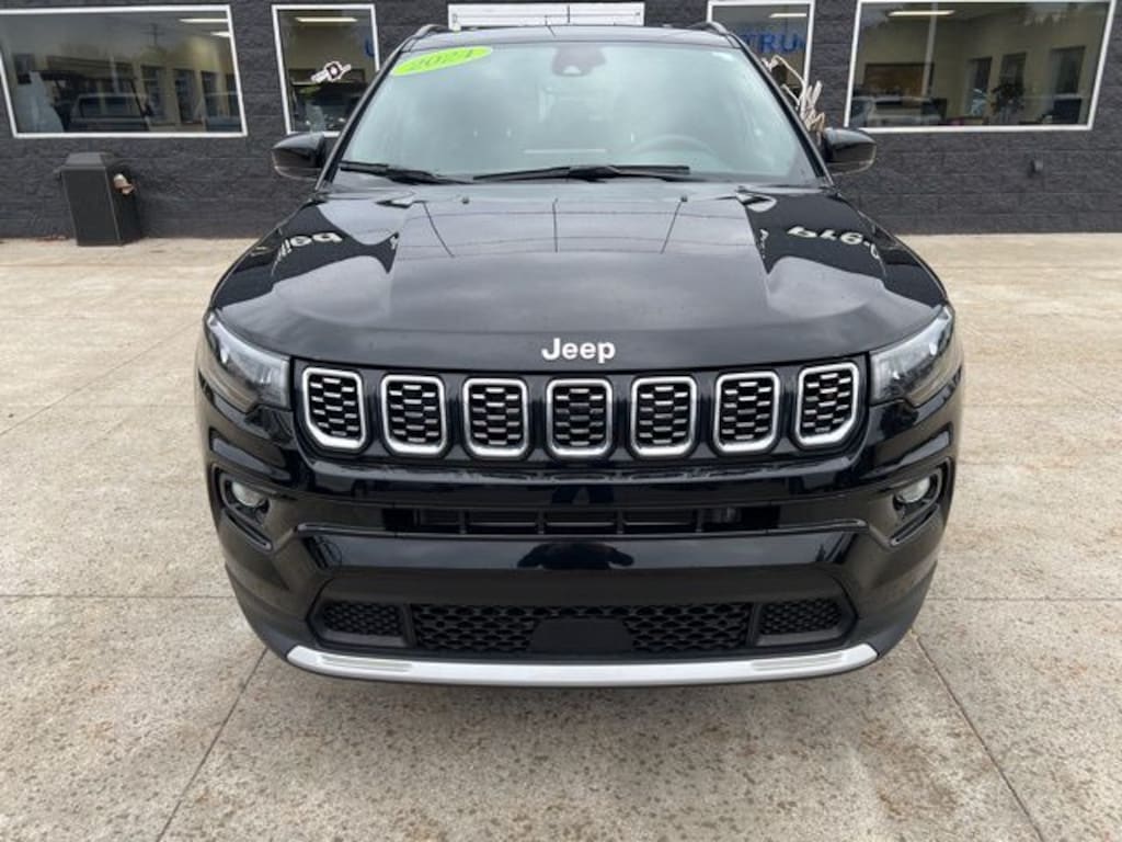*NO NEED TO LEAVE YOUR HOME OR BUSINESS!! SZOTT DELIVERS!!!. Recent Arrival! CARFAX One-Owner. Odometer is 6160 miles below market average! 2024 Diamond Black Crystal Pearlcoat Jeep 4WD Compass Limited 8-Speed Automatic With some available options like Quick Order Package 29G Limited, 10.1" Touchscreen Display, 3.73 Final Drive Ratio, 4-Wheel Disc Brakes, 4G LTE Wi-Fi Hot Spot, 6 Speakers, ABS brakes, Air Conditioning, Alloy wheels, AM/FM radio: SiriusXM, Auto High-beam Headlights, Auto-dimming Rear-View mirror, Automatic temperature control, Brake assist, Bumpers: body-color, Compass, Delay-off headlights, Disassociated Touchscreen Display, Driver door bin, Driver vanity mirror, Dual front impact airbags, Dual front side impact airbags, Electronic Stability Control, Emergency communication system: Jeep Connect, For Details, Visit DriveUconnect.com, For More Info, Call 800-643-2112, Four wheel independent suspension, Front anti-roll bar, Front Bucket Seats, Front Center Armrest w/Storage, Front dual zone A/C, Front fog lights, Front reading lights, Fully automatic headlights, Global Telematics Box Module (TBM), Heated door mirrors, Heated front seats, Heated steering wheel, Illuminated entry, Knee airbag, Leather Shift Knob, Leather steering wheel, Leatherette Seats, Low tire pressure warning, Occupant sensing airbag, Outside temperature display, Overhead airbag, Overhead console, Panic alarm, ParkView Rear Back-Up Camera, Passenger door bin, Passenger vanity mirror, Power door mirrors, Power driver seat, Power steering, Power windows, Radio: Uconnect 5 w/10.1" Display, Rain sensing wipers, Rear anti-roll bar, Rear seat center armrest, Rear window defroster, Rear window wiper, Remote keyless entry, Security system, SiriusXM Guardian - Included Trial (B), SiriusXM Radio Service, Speed control, Split folding rear seat, Spoiler, Steering wheel mounted audio controls, Tachometer, Telescoping steering wheel, Tilt steering wheel, Traction control, Trip computer, Turn signal indicator mirrors, Variably intermittent wipers, and Wheels: 18" x 7" Painted Diamond Cut AluminuM.